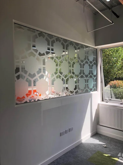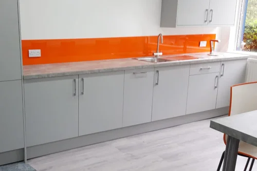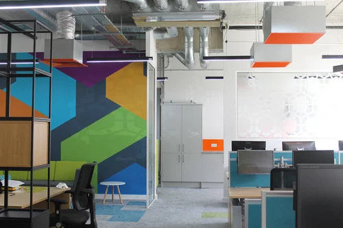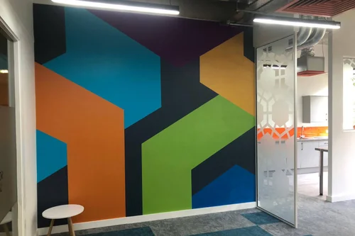 A stunning feature graphic wall was created along with all other painting and decorating works, where we used vibrant colours to help modernise the area.