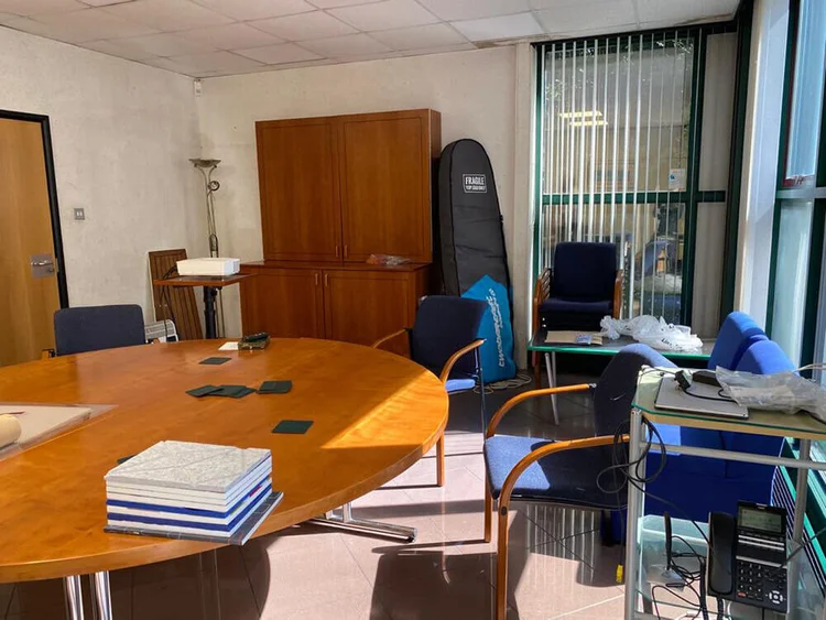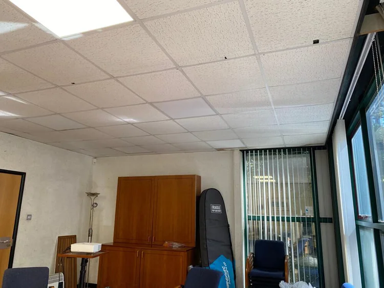 We also advised the client on how simple refinements to existing elements could elevate the entire environment. For instance, we suggested re-finishing the green window frames in a more neutral tone to align with their corporate branding. Additionally, replacing the old ceiling tiles with new ones would refresh the space instantly, creating a uniform and polished finish.